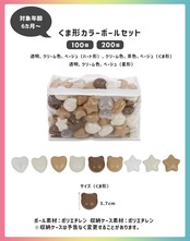 【大人気のカラーボールにくま形カラーボールが登場!】やさしい色合いでまとまった可愛いくまさんの形。くま形に加えハート形、星形がセットになったバラエティ豊かなセットです。