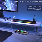 TOPLAND(トップランド) 延長コード 電源タップ USB充電付き ゲーミング AC 6口 USBポート 2口 2.4A LED イルミネーション ブラック 2m UMA10-BK | グランメゾンショップ