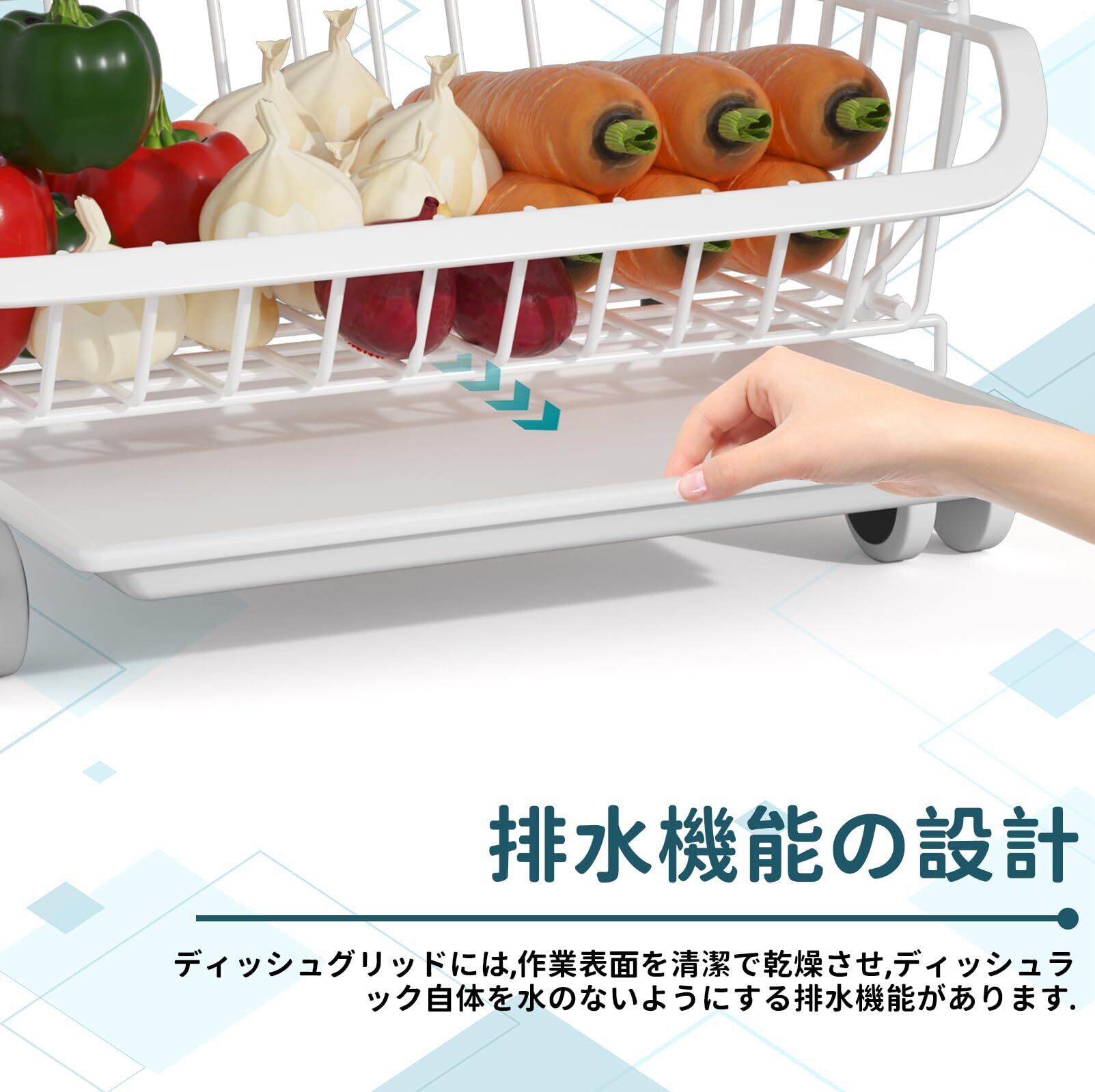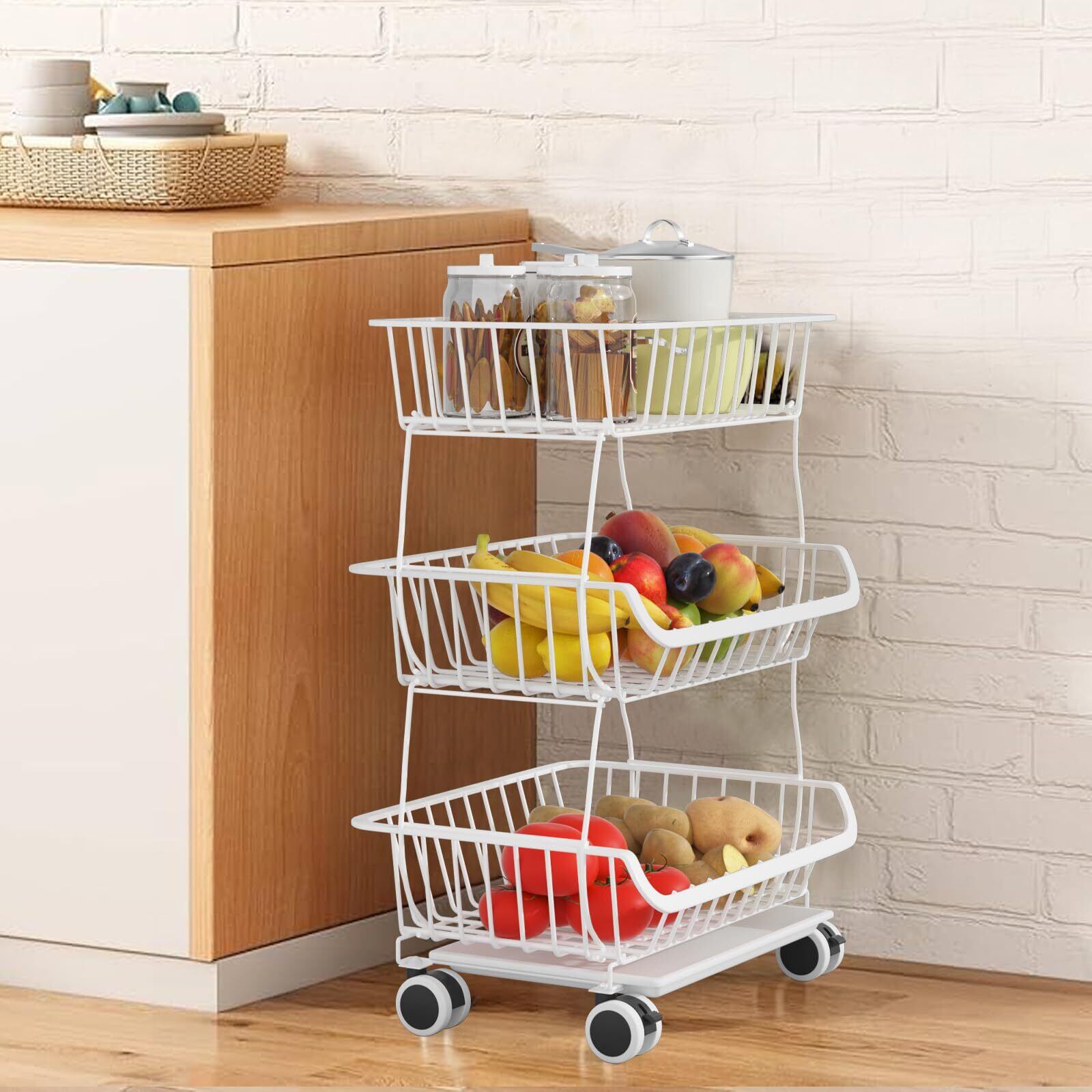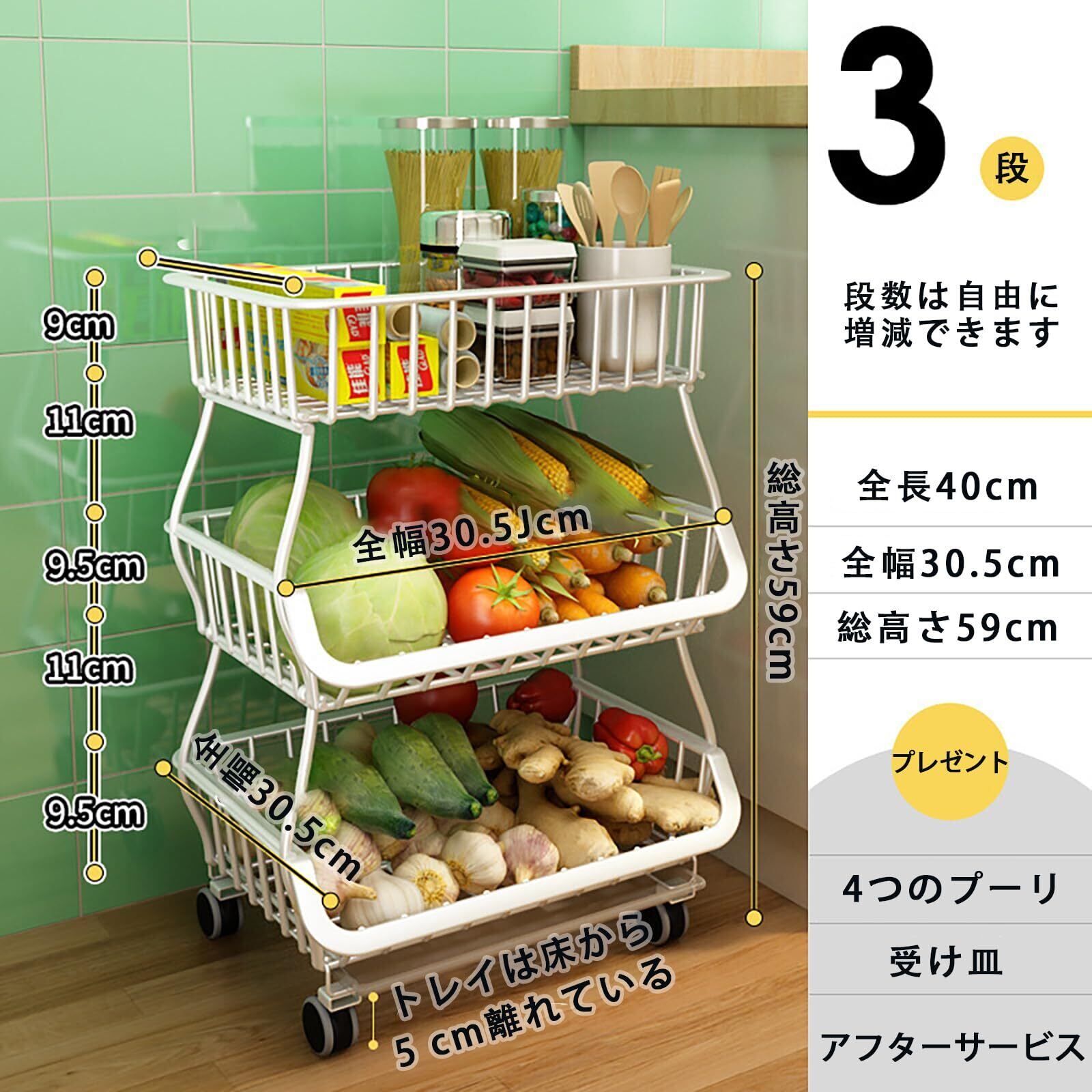 BQKOZFIN キッチンワゴン ラック 3段 キッチン キッチンシェルフ 収納カート 3段 スタッキングバスケット キッチン 収納家具 ワイヤーバスケット 果物と野菜の保管 多機能収納バスケット キャスターとパッド付き 白 | グランメゾンショップ