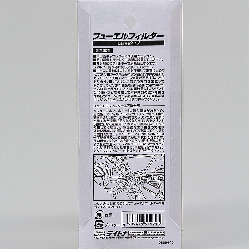 デイトナ(Daytona) バイク用 燃料フィルター φ6/φ8共通 ラージタイプ ペーパーろ過 フューエルフィルター 96451