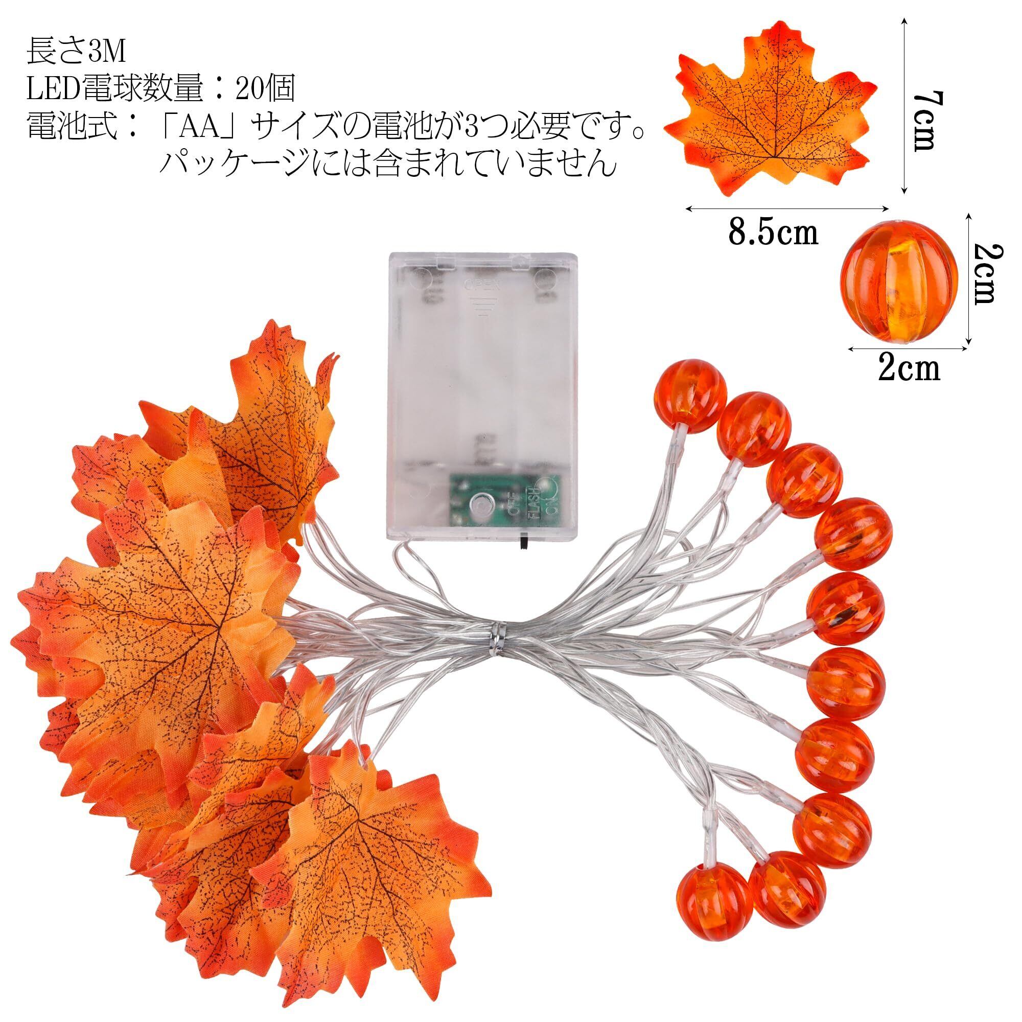 DERAYEE 秋の葉 ガーランド ハロウィン クリスマス 飾り 人工 紅葉 電池式 20個のLED 長さ3M ストリングライト ホーム 暖炉 (紅葉とパンプキンC)